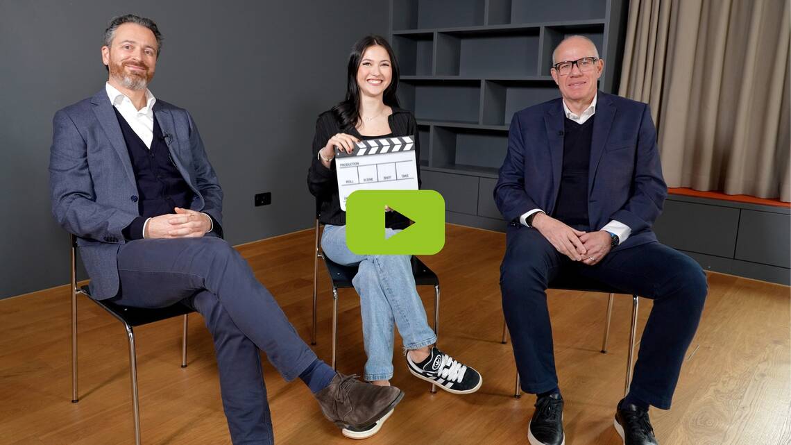Dieter Beeler, HGW-Präsident und Gamal Rasmy, HGW-Geschäftsführer im Gespräch mit Lorena Lajqi, Lernende bei der HGW.