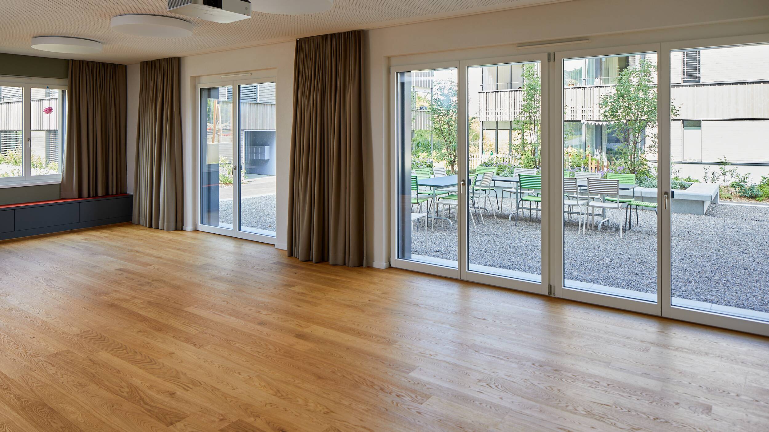 Der Quartiertreff bietet Platz für 40 Personen und steht ausschliesslich den Bewohnenden der Siedlung Grüntal zur Verfügung.