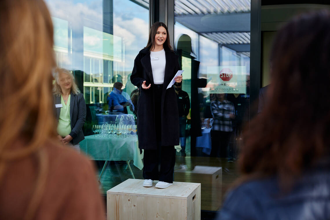 Beim traditionellen Frühlingsapéro dankt die HGW ihren Geschäftspartner:innen für die Zusammenarbeit. Rund 100 Gäste kommen zusammen – und unsere Lernende Lorena Lajqi begeistert mit ihrer Ansprache.