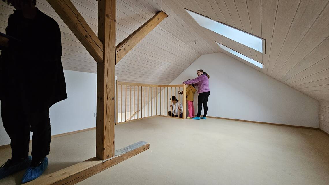 Am Tag der offenen Tür in der Siedlung Grabenacker erkunden künftige Bewohner:innen ihre neuen Wohnungen. Während die Erwachsenen Masse nehmen und Einrichtungsideen durchgehen, sind die Kinder schon mitten in der Diskussion, wer welches Zimmer bekommt.