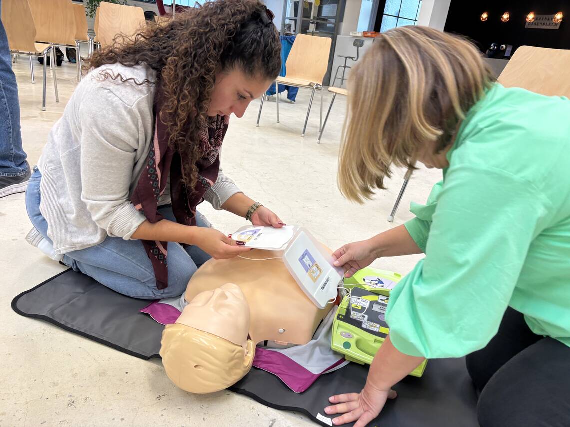 Am Mitarbeiter:innen-Workshop lernt das HGW-Team, wie man im Notfall Erste Hilfe leistet. Die wichtigste Erkenntnis: Nur wer in einem Notfall gar nicht handelt, macht etwas falsch.