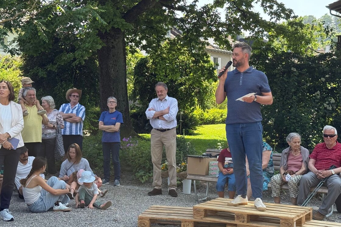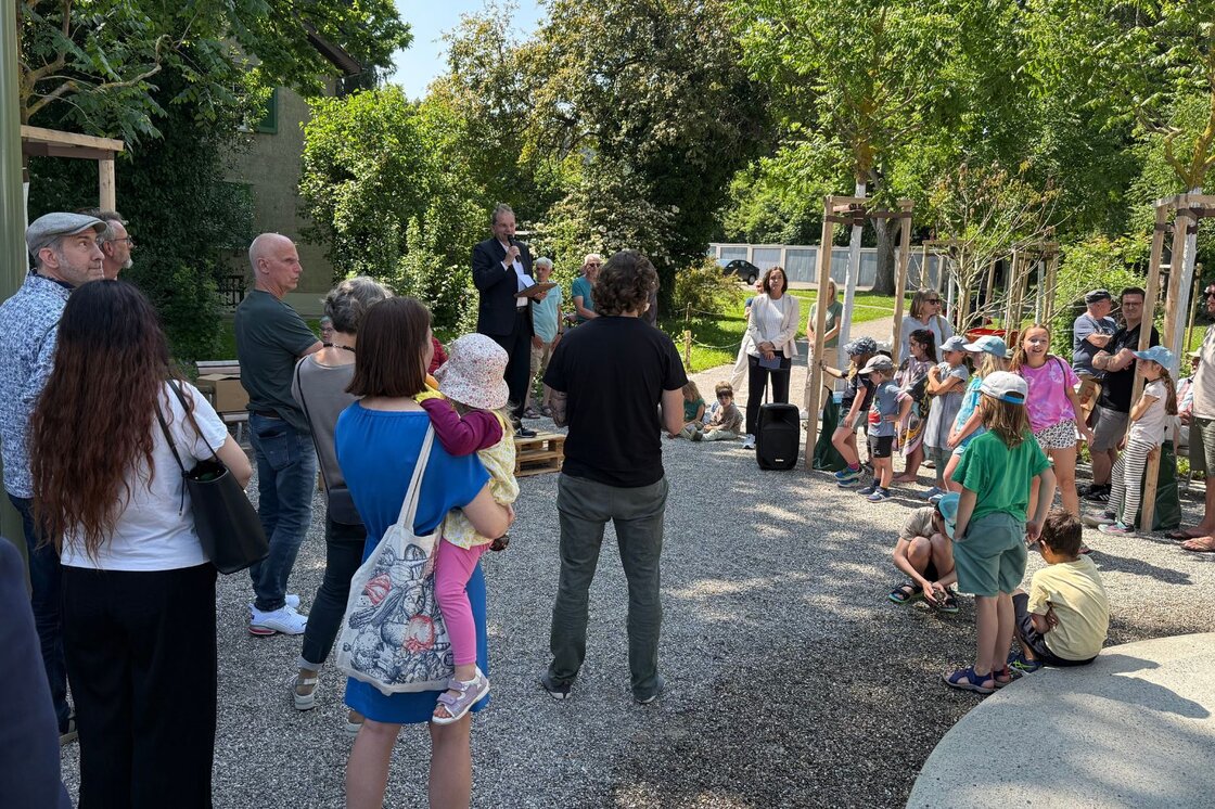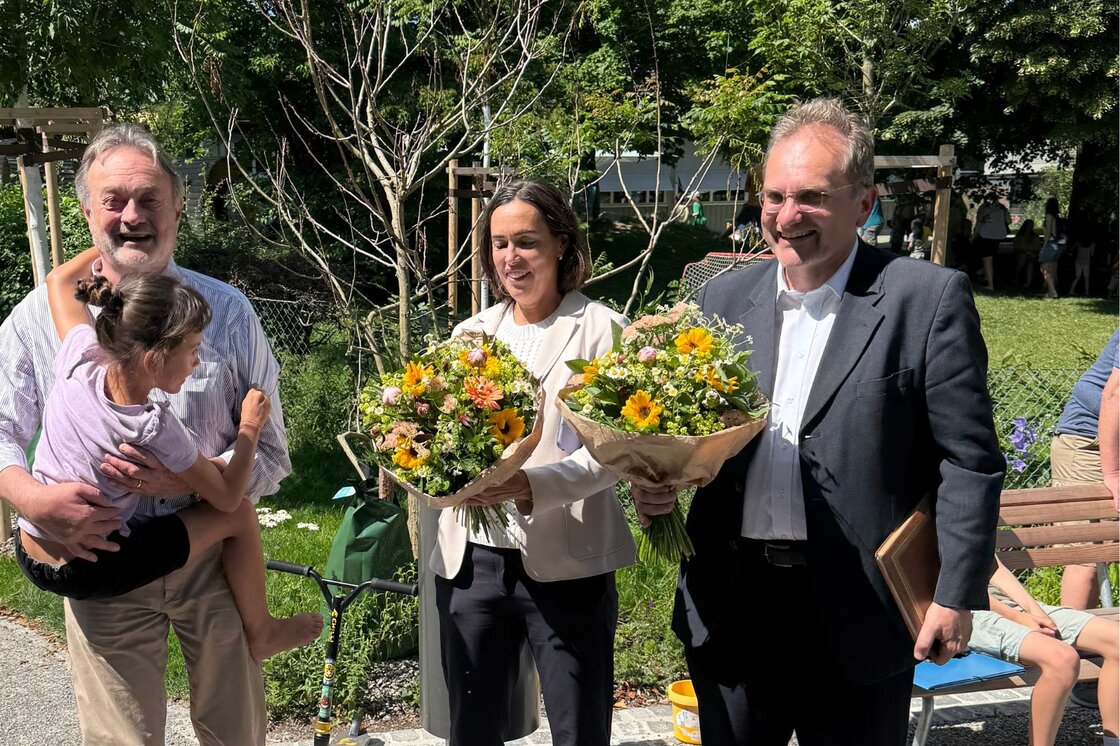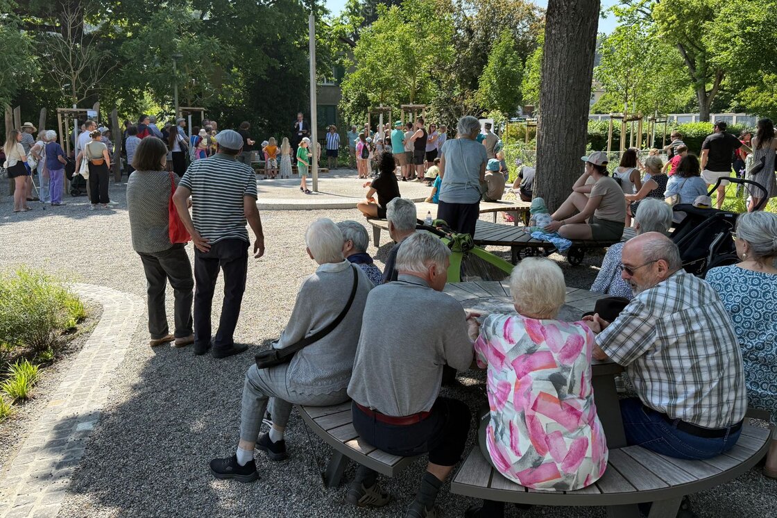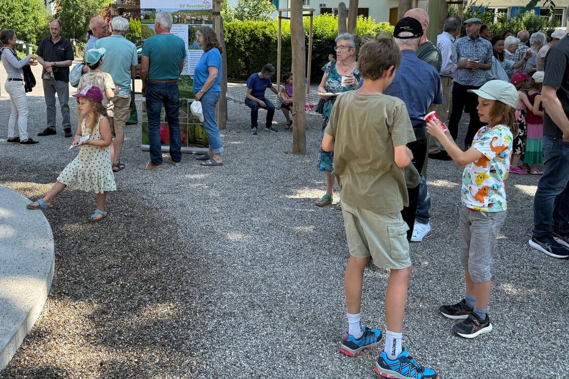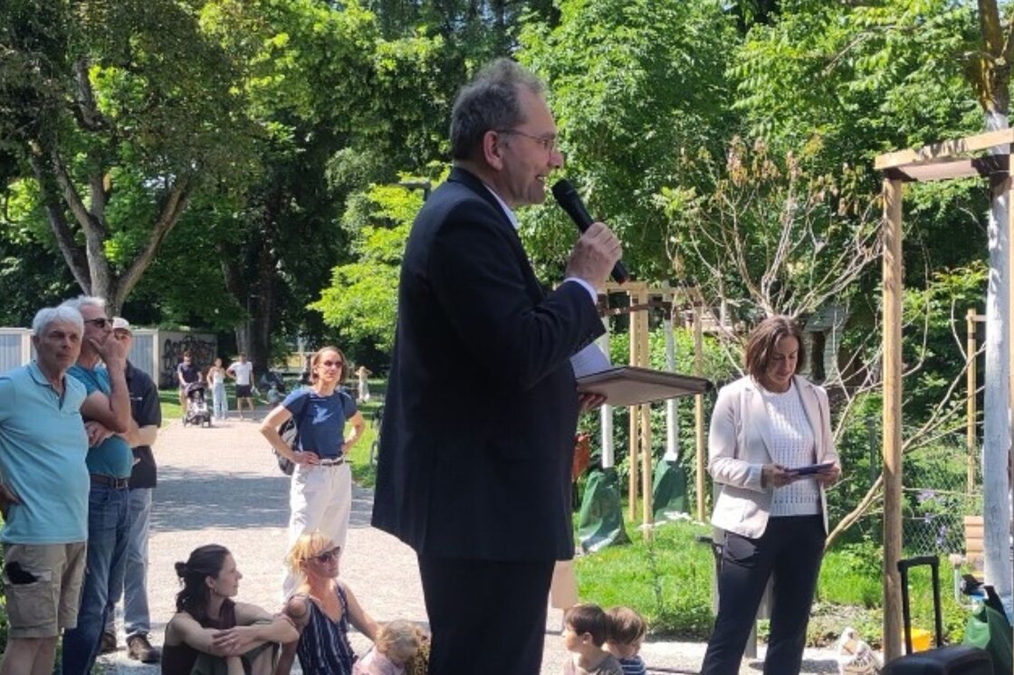 Zur Eröffnung sprachen unter anderem Stadtrat Stefan Fritschi (Technische Betriebe), Stadträtin Martina Blum (Schule und Sport), Christian Wieland (Vertretung der Quartiervereine), Thomas Meitz und Frank Zayk (Projektleitende von Stadtgrün) – sowie Severin Mom, Leiter Genossenschaftliches von der HGW.