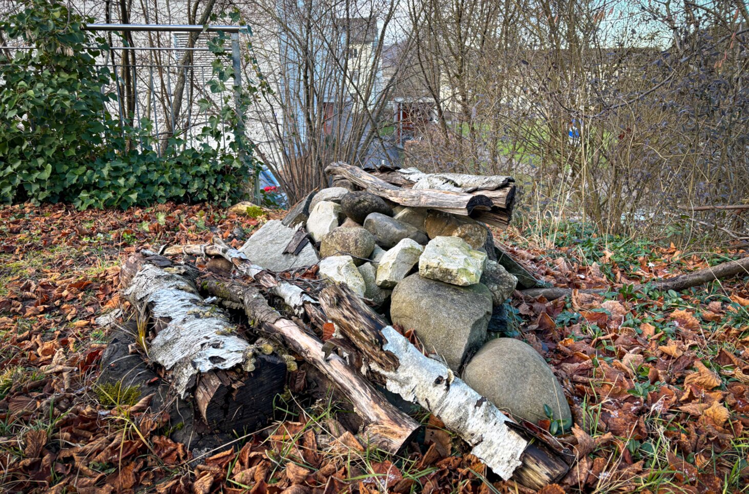 - Totholz bleibt oft bewusst liegen, um Insekten und Kleintieren ein Zuhause zu bieten – oder wird für unsere Igelhotels verwendet.