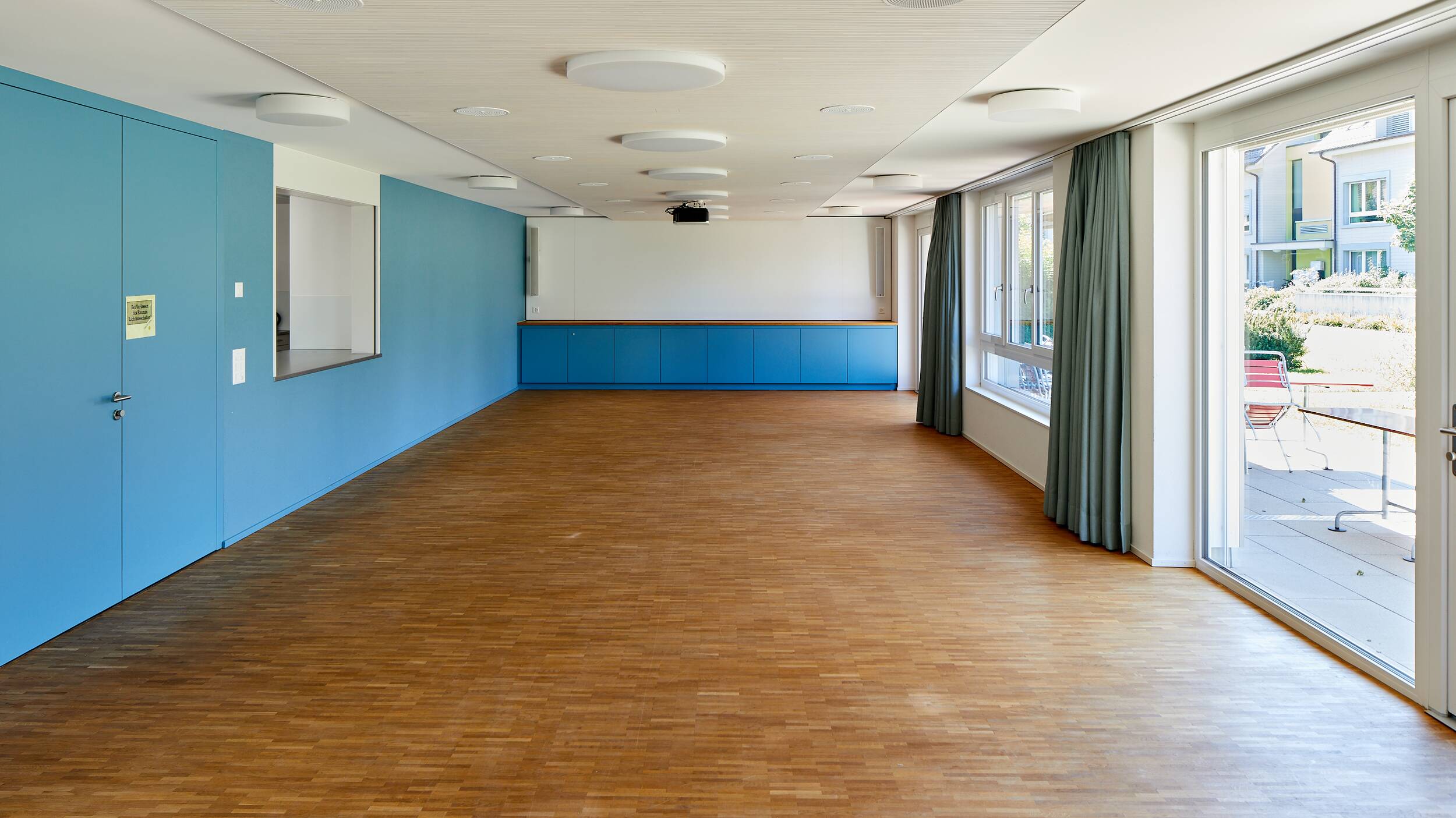 Ausgestattet ist das Quartierzentrum mit einem Beamer, einer Soundanlage und Projektionsfläche. In der Küche gibt es zwei Backöfen, einen Kühlschrank sowie einen Getränkekühlschrank, eine Abwaschmaschine und eine Kaffeemaschine. Im Aussenbereich stehen Ihnen Tische und Stühle sowie Sonnenschirme zur Verfügung. Für die Kleinen gibt es eine Spielekiste. Der ganze Quartiertreff ist barrierefrei.
